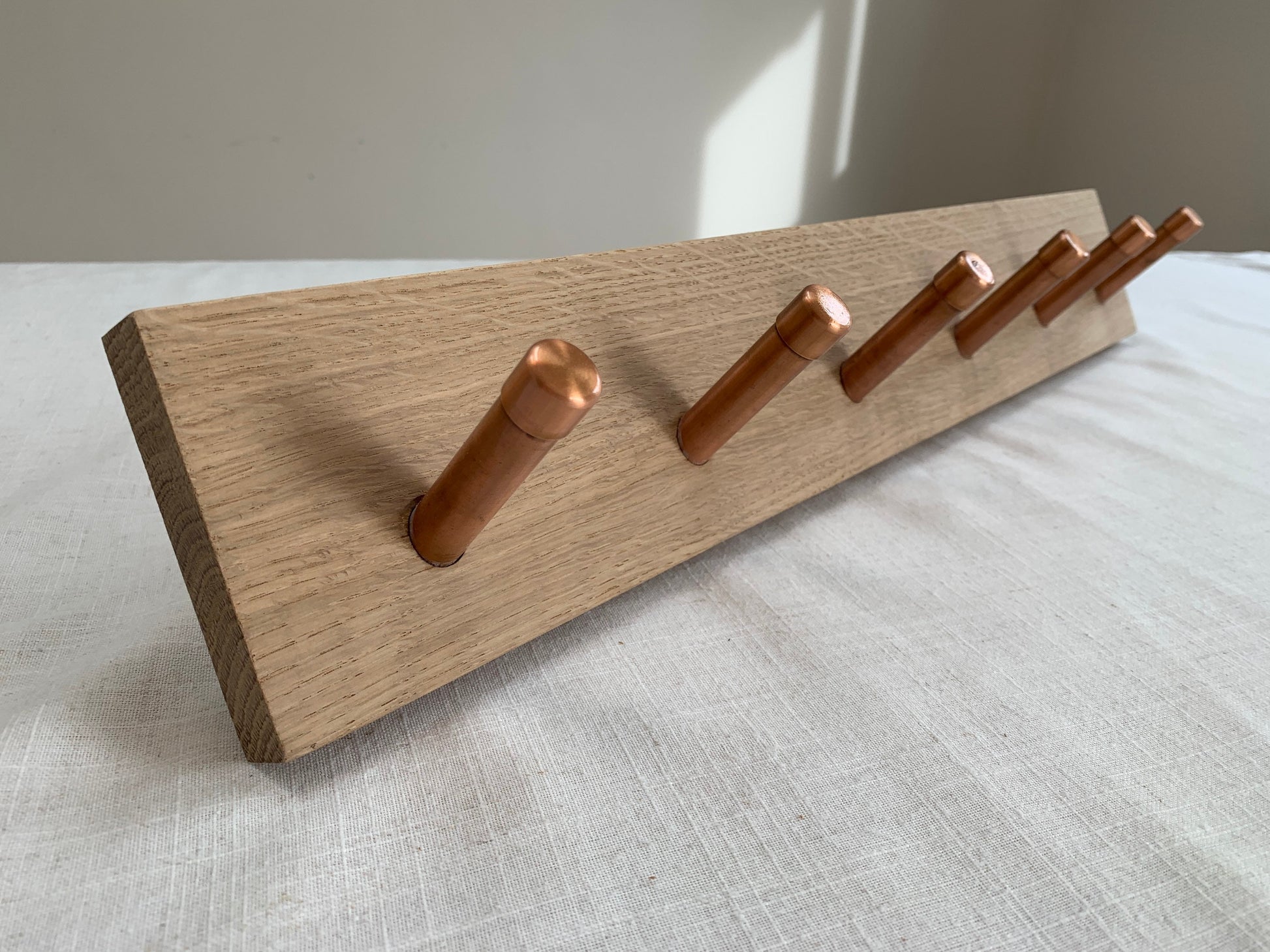 Oak coat hook peg rail with Copper pegs